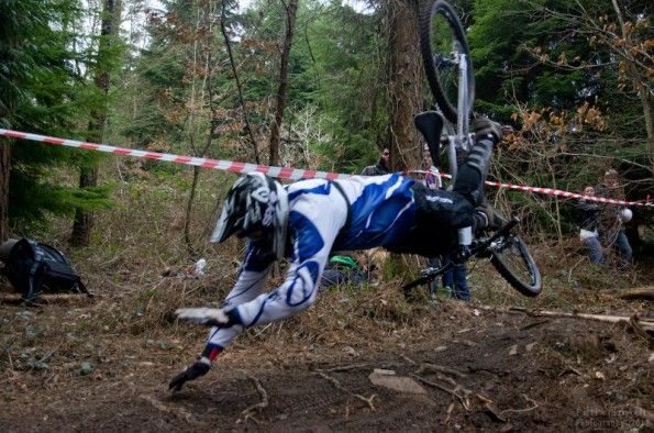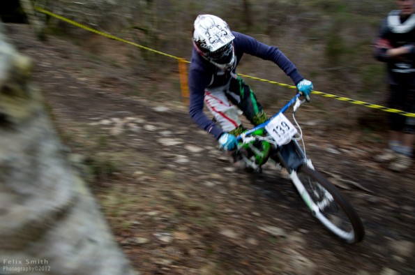 First runs were over in a flash and early reports were that Jay and Ash were on the same second but no one knew who was in front of who, intriguing. Ryan Tunnel had come out of the winter looking fresh and the seemingly indestructible Bow Cann was proving that riding a bike definitely has a genetic element to it. Owen Willicombe’s (Kustom Bikes) winter had treated him well even if it hadn’t made him in to Trinny OR Suzanna as his post race choice of knitwear confirmed. Andy Boyle was doing his best to win a £10 voucher for the shop he now owns (Dartmoor Cycles) and John Cobb was proving that being a distinguished gentleman of a certain age doesn’t mean you have to slow down even if you do start to look at stair lifts longingly.