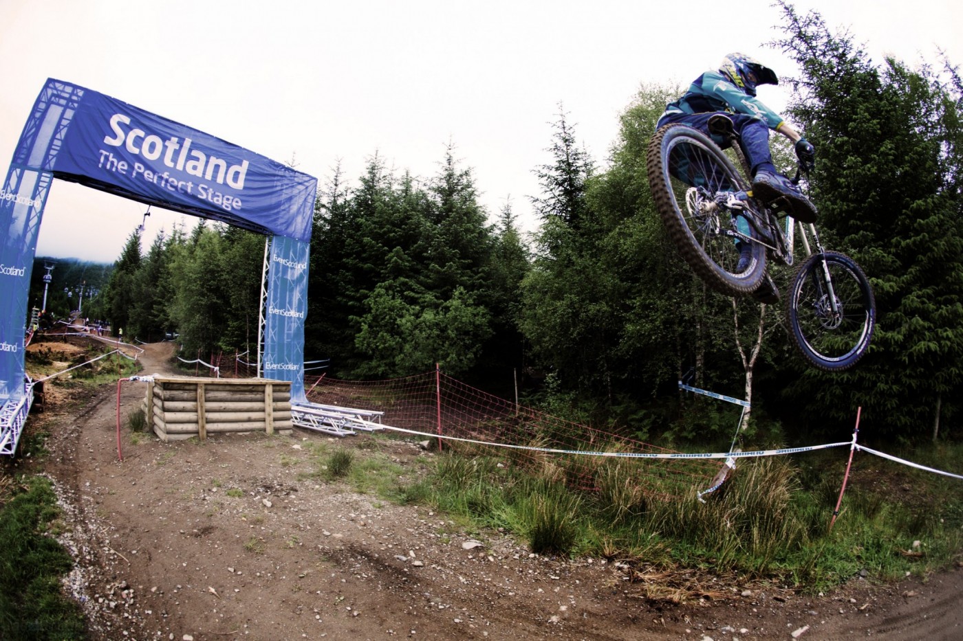 The ‘Scotland Arch’ (aka the Tissot Arch) is where the riders appear as they explode into view of the screaming fans at the finish line. It’s the point that everyone’s eyes are glued on to see if their favourites will make the cut or are off the pace. It’s also the place for the riders to smash out a whip for the fans. Here’s Ollie Burton getting sideways for the home-crowd and for his first time qualifying for a World Cup at Fort William. A slightly disappointing 55th place for Ollie though after a solid South Africa result. More from him to come we reckon!