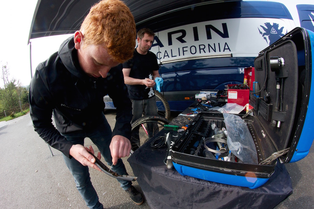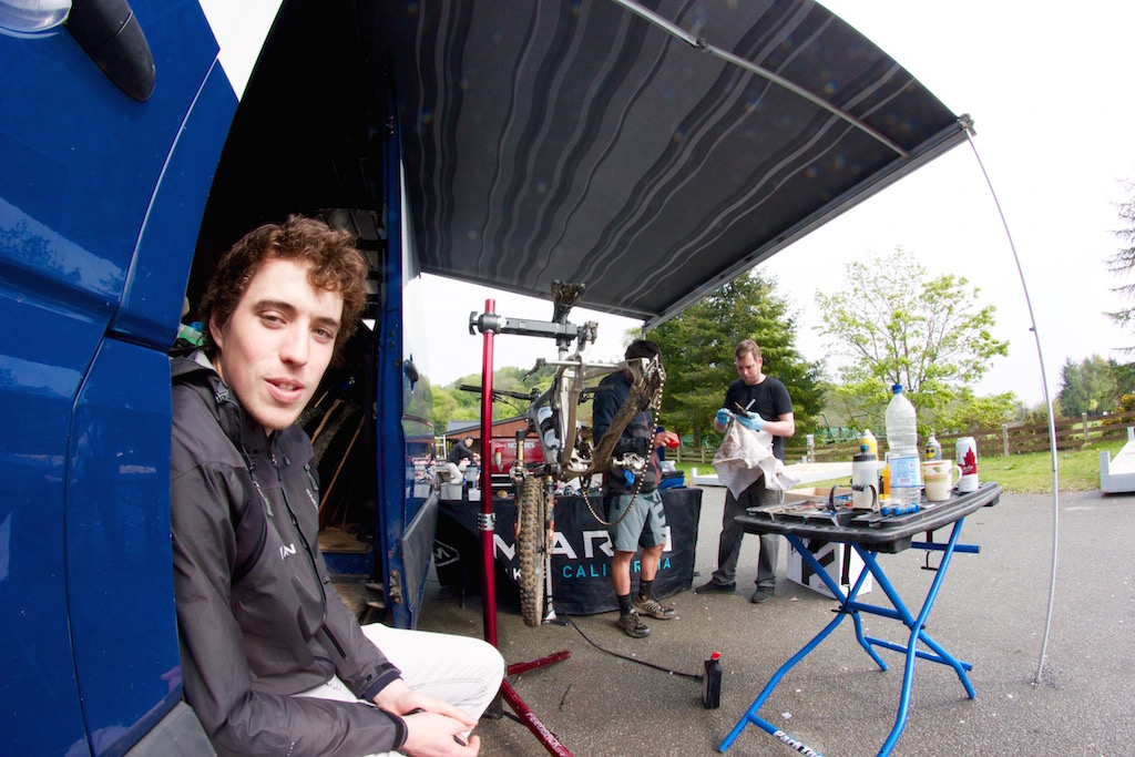 I’m out here with the Marin Stans NoTubes team who’ve got Rob Williams, Leigh Johnson, Chris Keeble-Smith and Nikki Whiles on the start-sheet. I work with the team at my day job but don’t have much to do with the sharp end of their racing. I’ve stowed away with the team for our local(ish!) EWS to see how a team that isn’t Team Wideopenmag do it. Having spend the last 7 years trucking to races with TeamWO i’m looking to pinch some ideas!