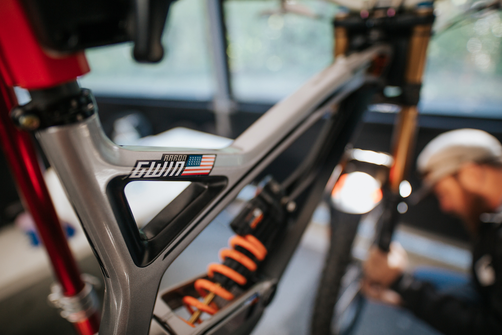 Heading over to YT, one of the first things to be seen is the infamous No.1 plate. Aaron Gwin’s mechanic was also running some pretty patriotic gear.