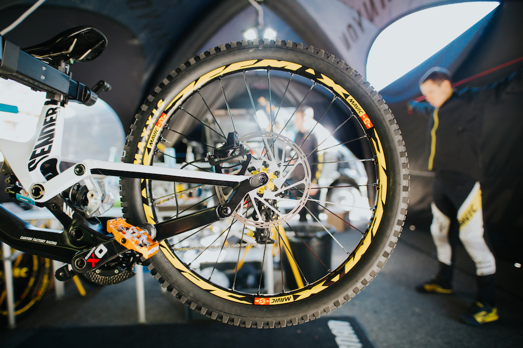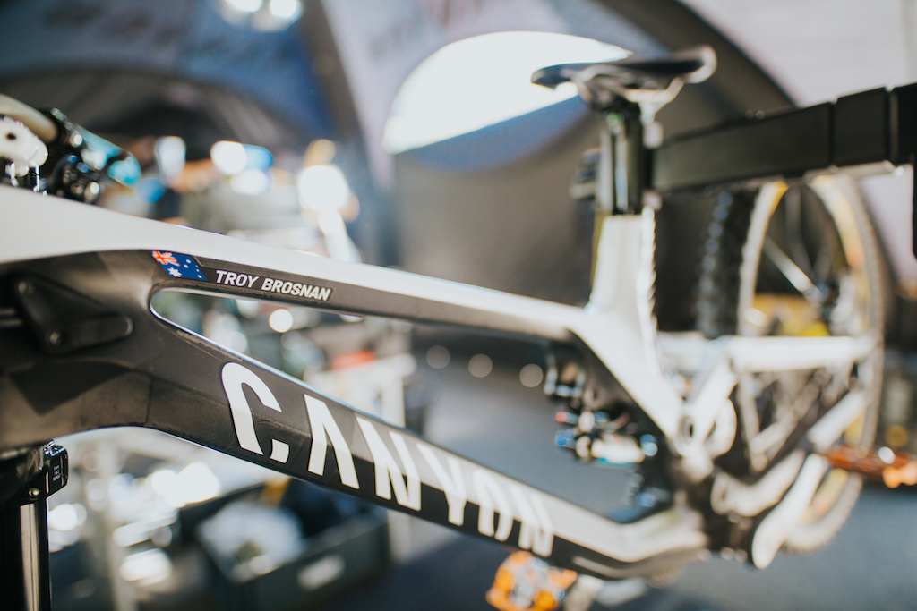 With some new big names on the Canyon team this year, it was interesting to see Troy Brosnans set up. Instead of super sizing his wheels, Brosnan went for super sizing his brakes with 220mm rotors.