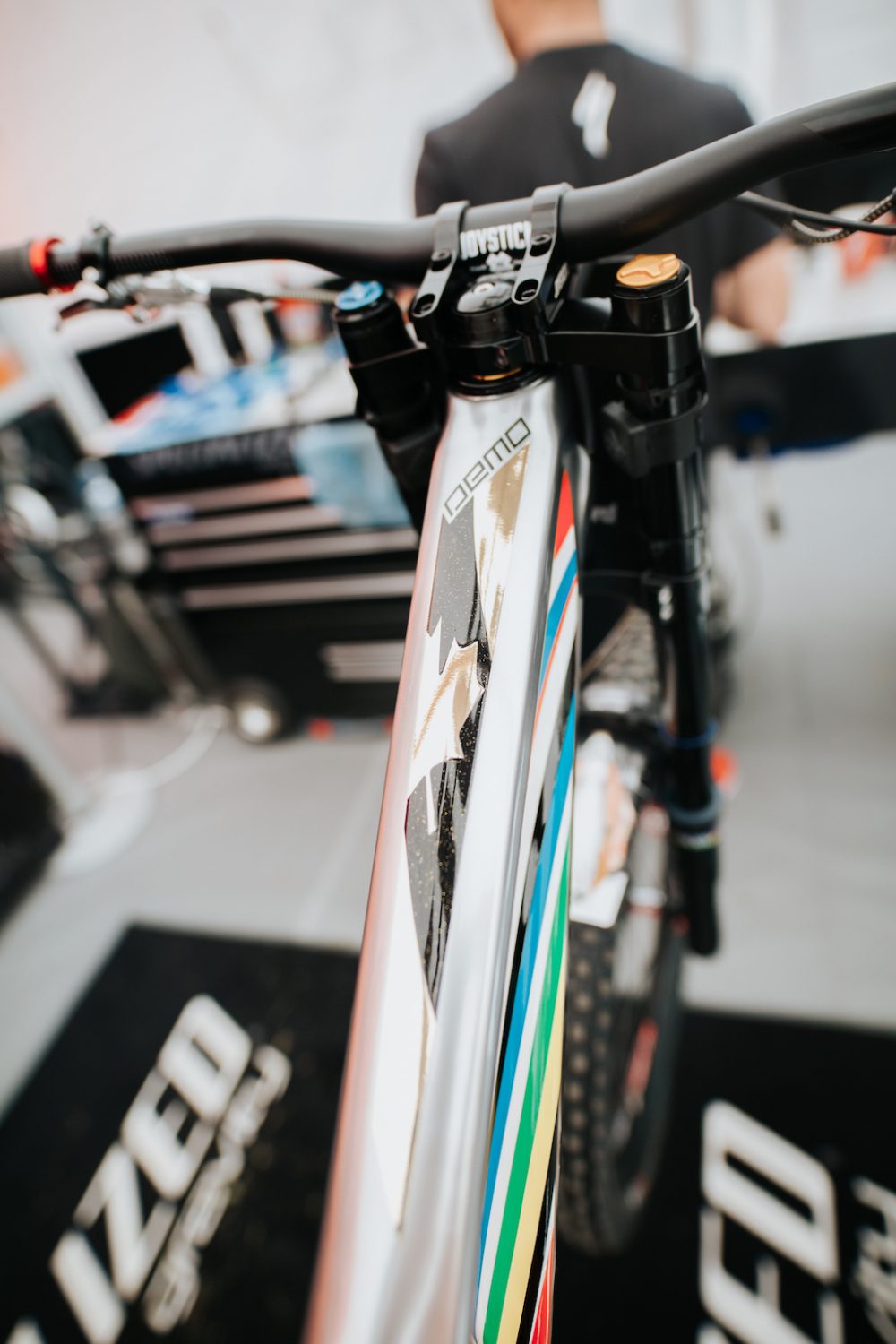 With their luminous trucks and multitude of sparkling Demos and Enduros, it was hard to miss the Specialized tent. On display was Finns new race bike with a custom world champ paint job following on from his win at World Champs in 2016 as a junior.