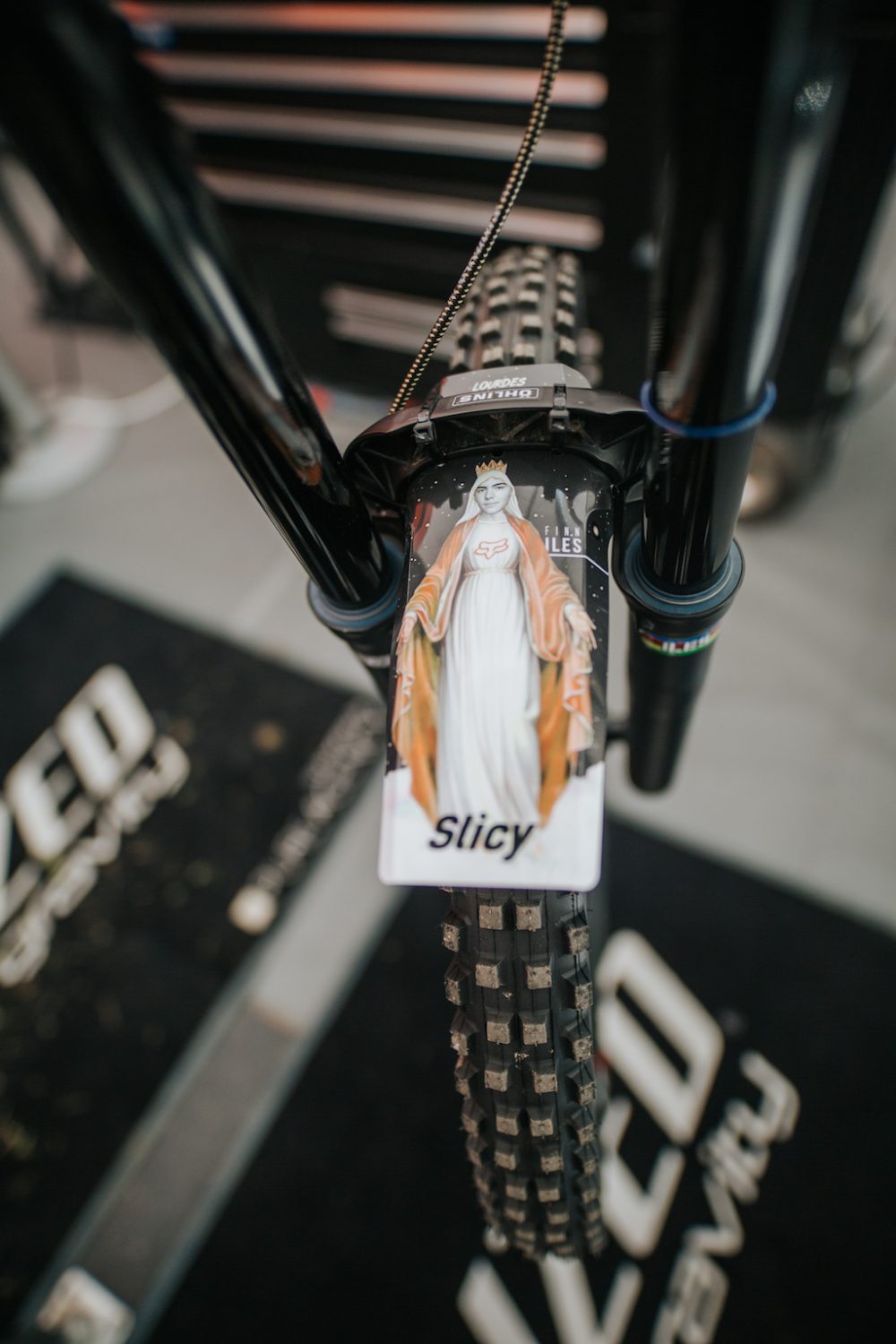 We’d love to have taken a photo of the Santa Cruz 29’er … but they wouldn’t let us in the pits so, here’s a picture of Fin Ille’s rad mud guard instead. Thanks for letting us in your pits Fin.