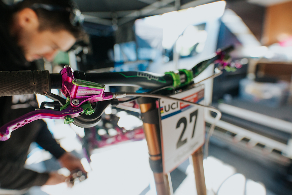 Saskia Dugon is at Lourdes for Round 1 of the Downhill World Cup. She’s beamed us a collection of bits from pro pits today.