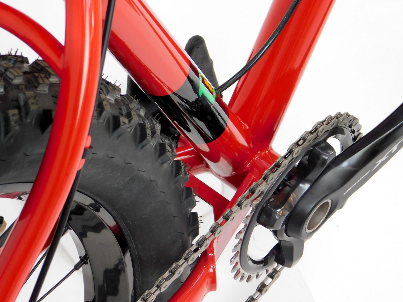 The bike will take 650b wheels with up to 3″ tyres or 29″ wheels up to 2.6″.