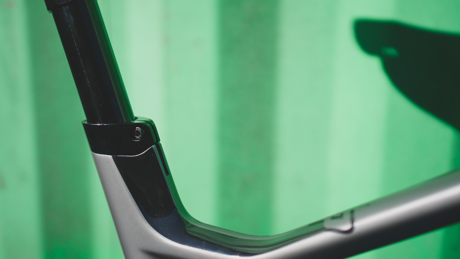 The bike also comes with a neat little space under the down tube that’s covered up with a clip on plastic cover. It’s a modest space but designed for stashing essential spares, tools and bits and bobs. Think Specialized Swat, albeit a little less elegant.
