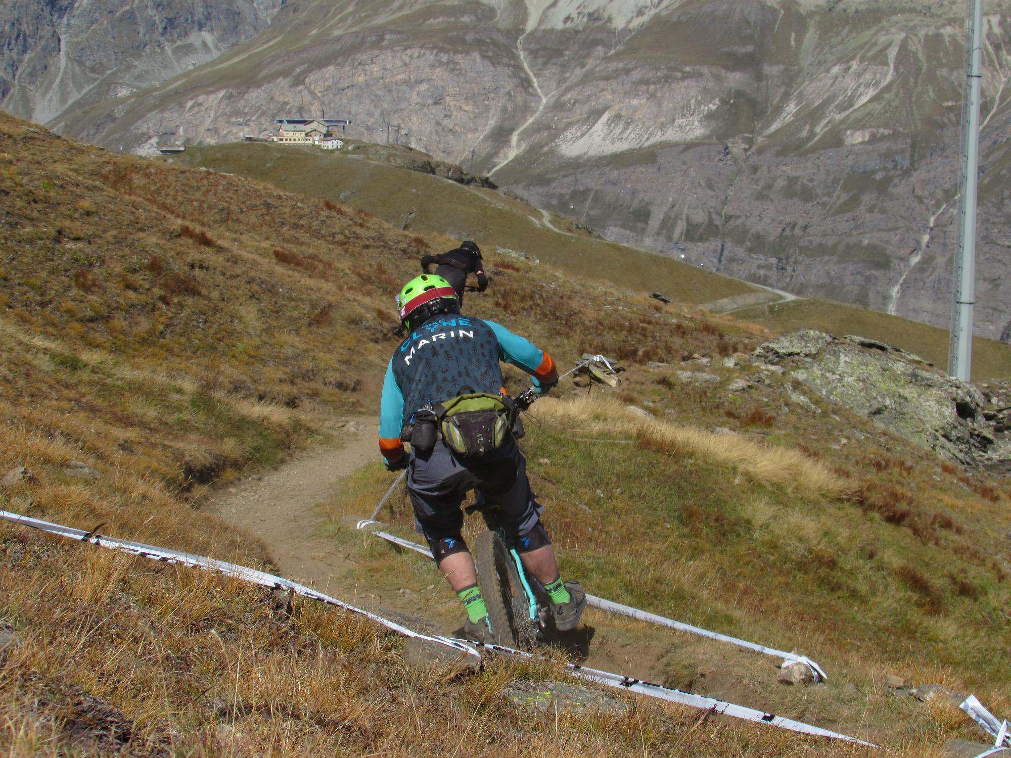 Stage 4 – A huge liaison up to 10,500ft treated us to an awe inspiring view of the Matter Valley and a stage thankfully with very little sprinting. We were treated to tight, narrow and some very exposed alpine single track. Many of the terrifying hairpins had inside lines to chose from, of which I made good use.