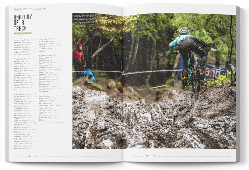 More than 200 pages of editorial cover the entire 2019 UCI DH World Cup series and World Championships.