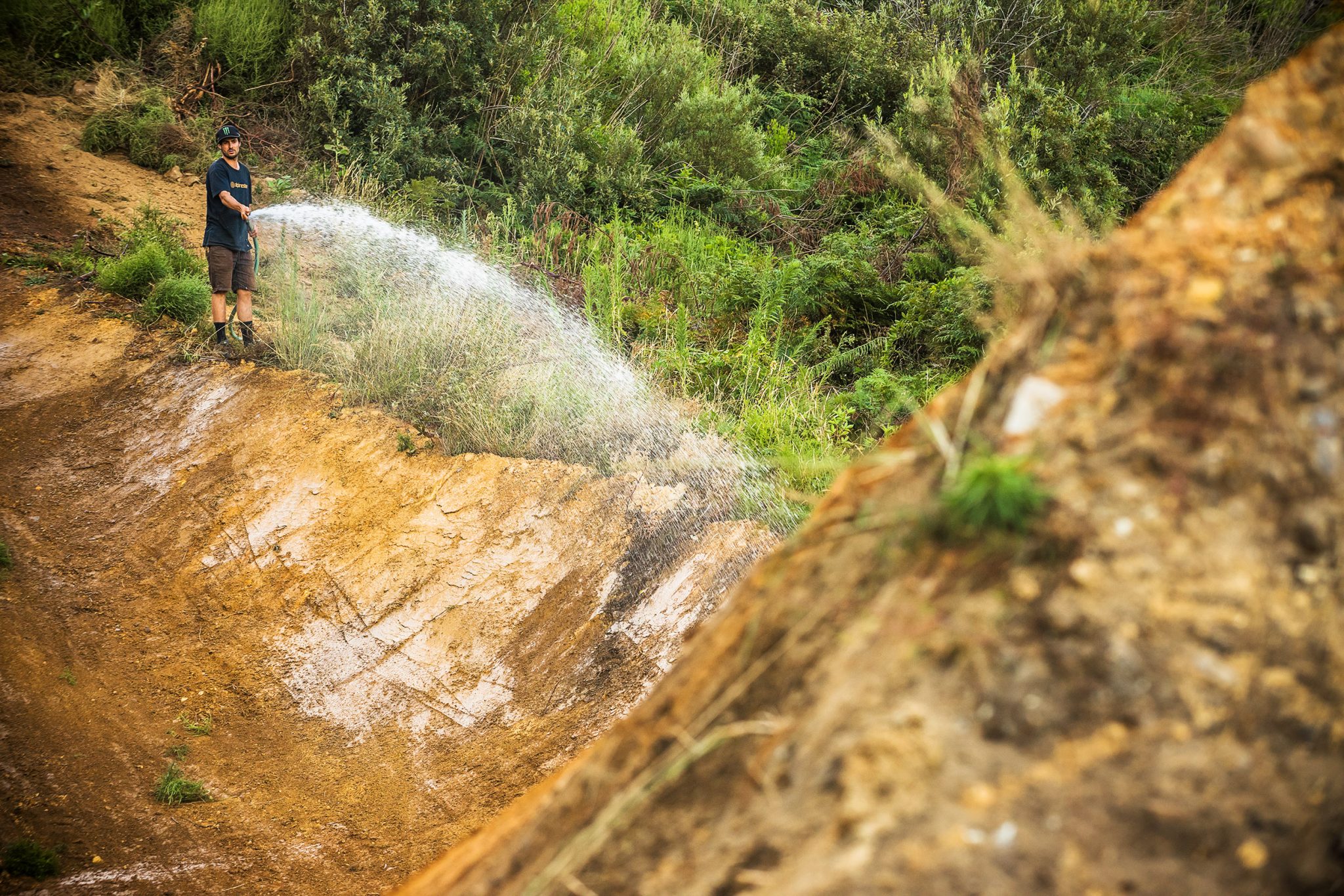 The line is pretty much complete all the way up until the last jump, so some more dialling in at the bottom and they’re all set. Work will all be focused on the last jump next week and we were lucky enough to have a bit of rain fall right at the end of the week, so it has settled the dust and the dirt should be perfect to work with.