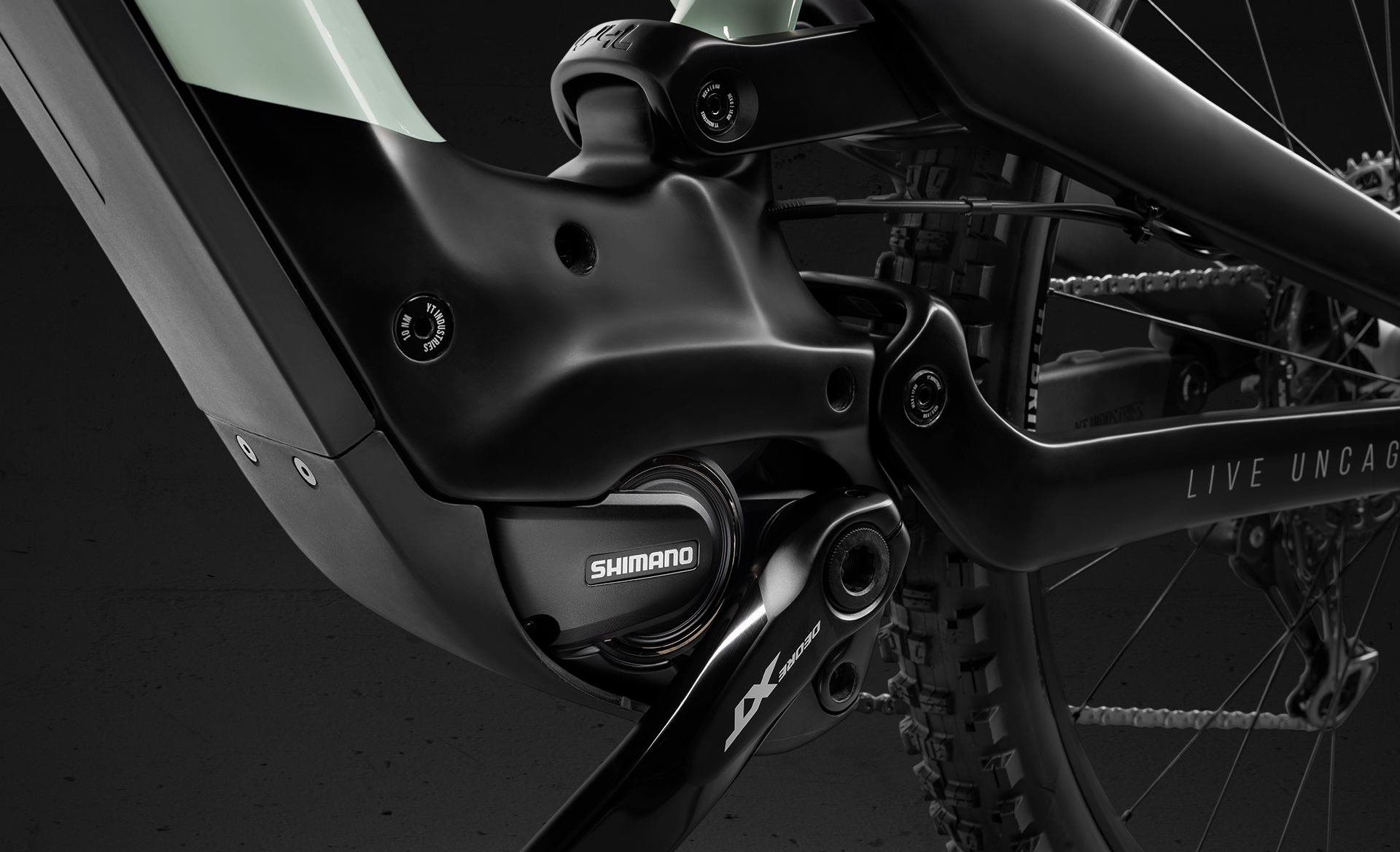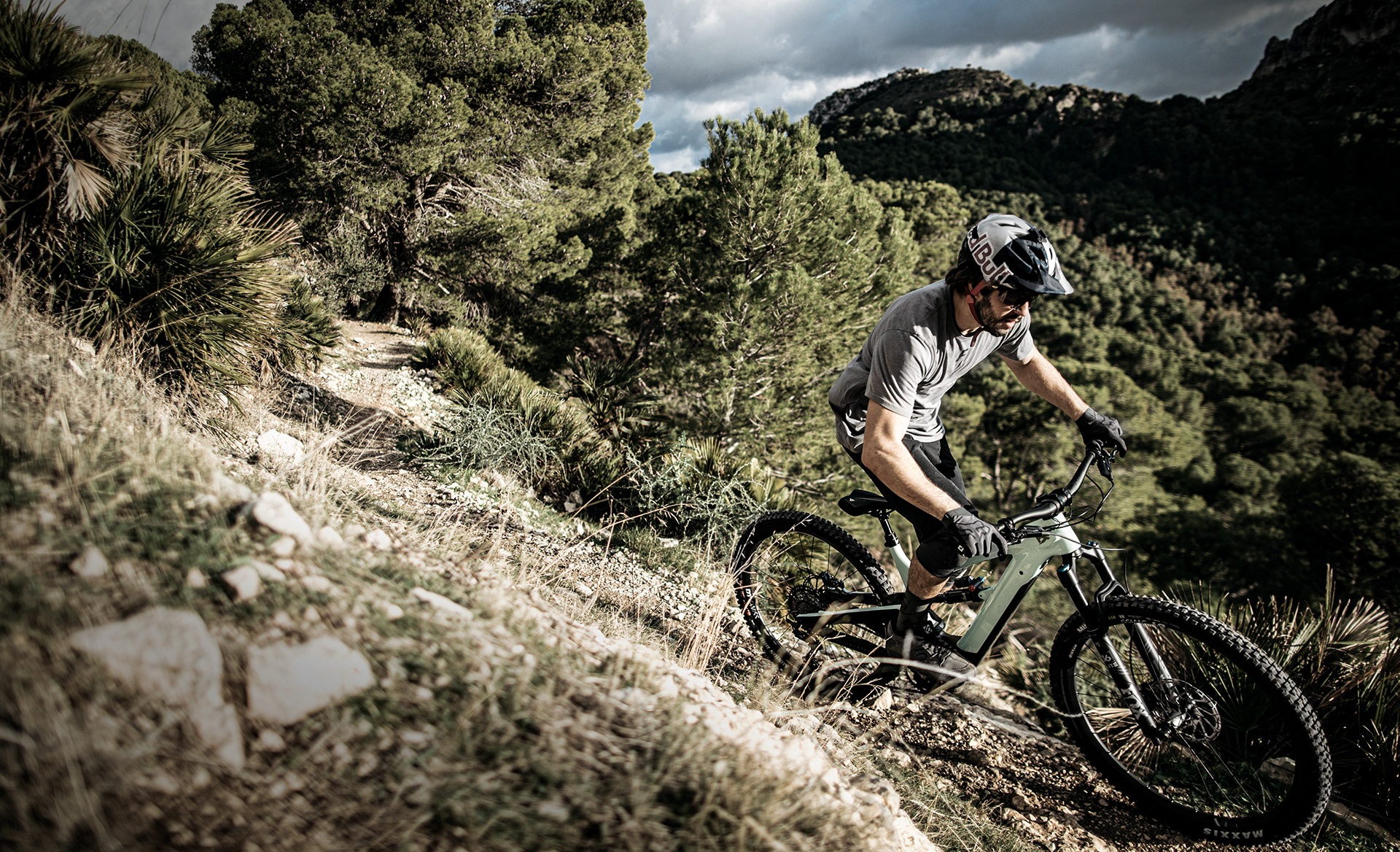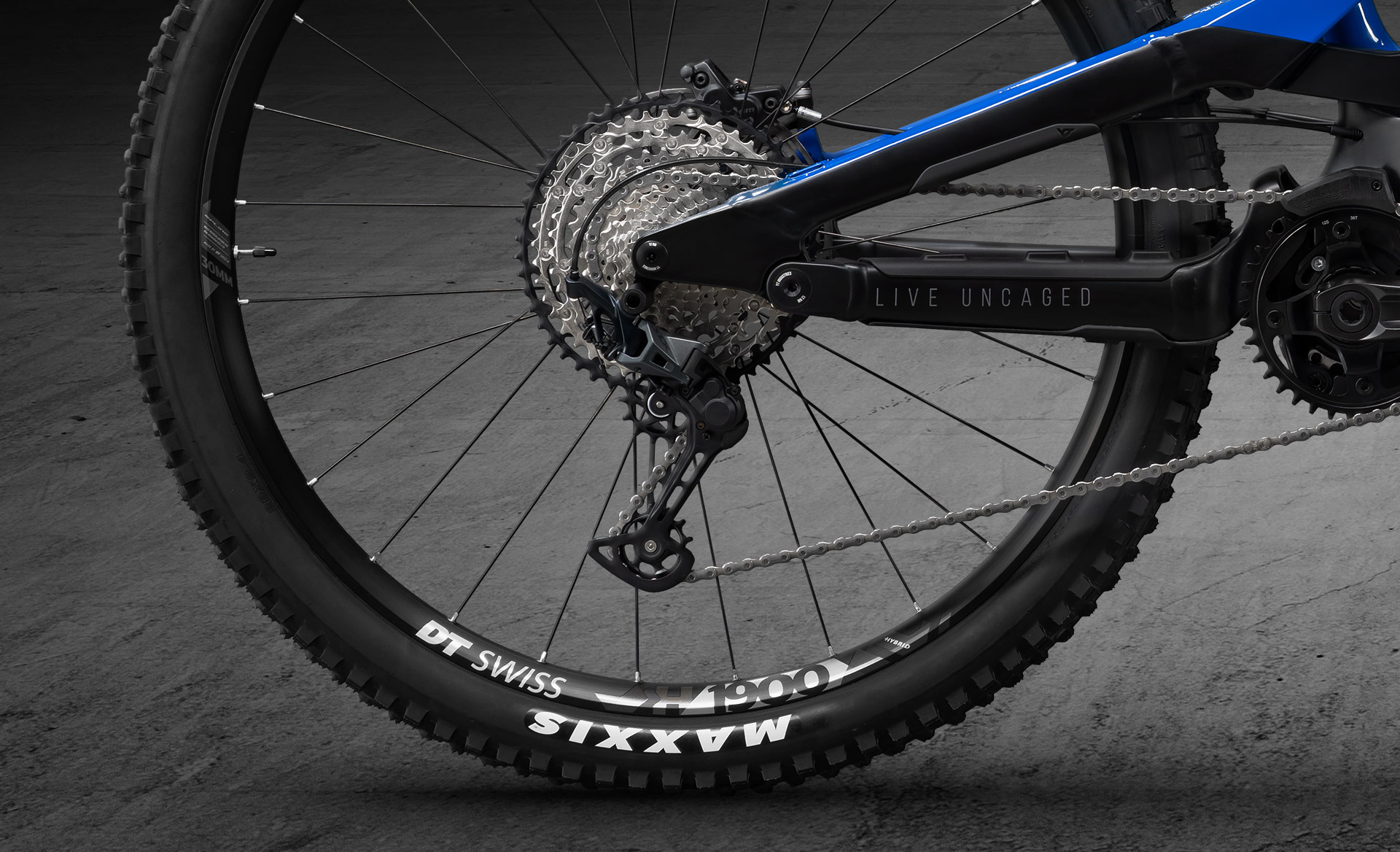 YT Industries’ all-mountain eMTB sports steeper angles and less travel than it’s mullet stablemate,, the original Decoy eMTB, but still provides the integrated battery and power switch, Shimano Steps E8000 motor and power pack.