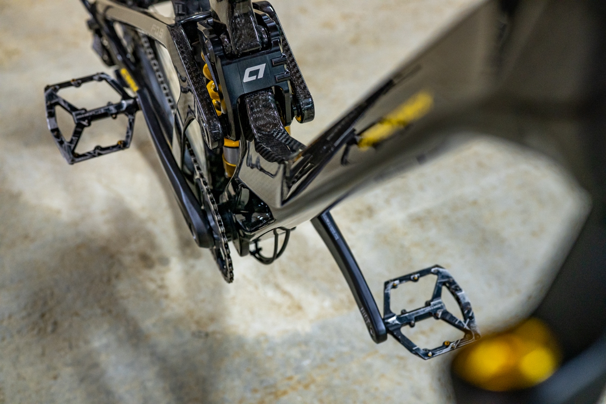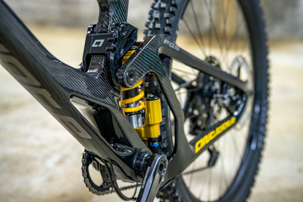 Second thing was kinematics similar to our previous Carbonjack. We wanted a bike that was active under braking, pedal efficient with no feedback, super small bump sensitivity, a low center of gravity and inline shock compression.