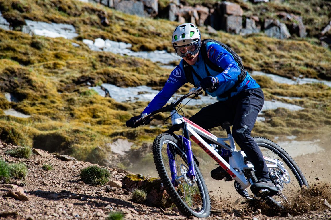 Hazzard Racing’s Joe Barnes takes on a steep and loose ‘Big Peak of the Hind’ on a balmy day in the Scottish Highlands.