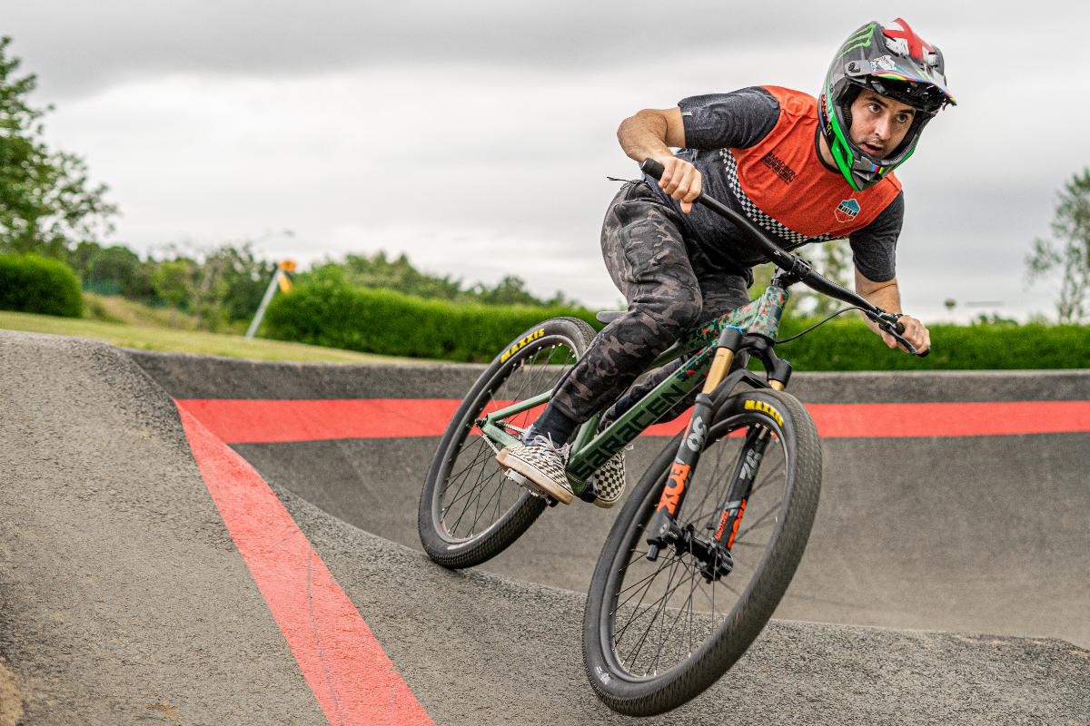 As the lockdown has eased Danny has been able to go further afield and start to see a few friends, a new Velosolutions pump track in Chopwell Village has offered a bit of variety to his riding.