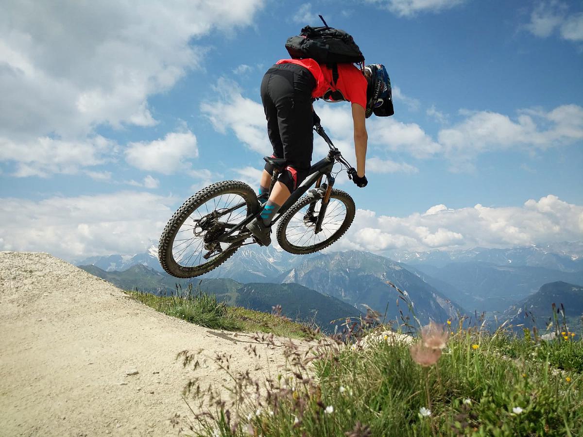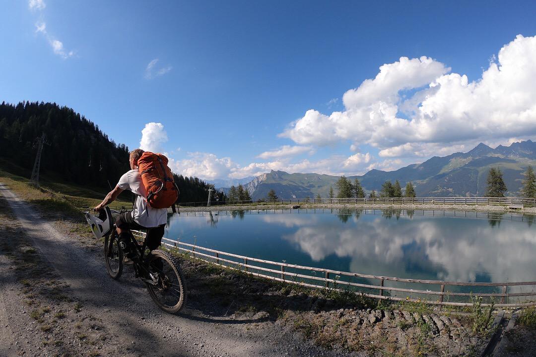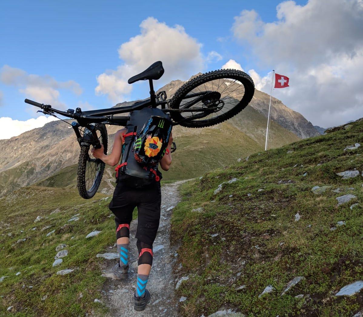 To be honest, I’m generally a fan of keeping things relatively under control. These days I get most of my kicks from big days out, venturing somewhere a little further afield and ideally involving a wild swim wherever possible. One particularly good trip which pushed the comfort zone and left us (myself and my partner, Christian – a relative newbie to MTB) with huge grins and satisfaction was an impromptu overnight trip to the top of a mountain in Switzerland, in summer 2018.
