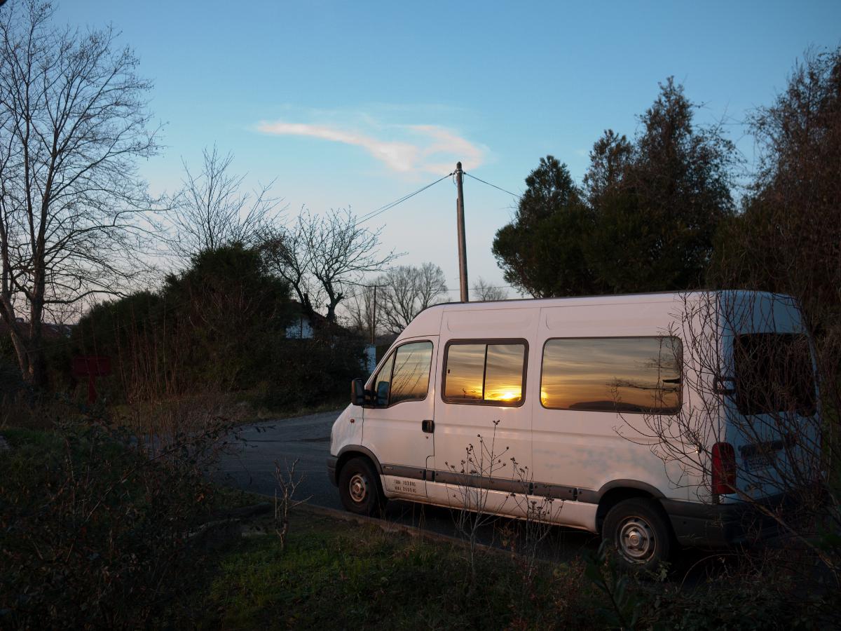 Arriving I found the battery flat, there was a car ahead and I could see there was someone sitting in the passenger seat with the door open. As I walked around the car to ask them to give me a hand I discovered that his girlfriend was kneeling outside the car with her head in his lap. I really spoiled that for him I guess. They drove off fast and I pushed the van down the hill, ran round and jumped into the drivers door and bumped it myself.