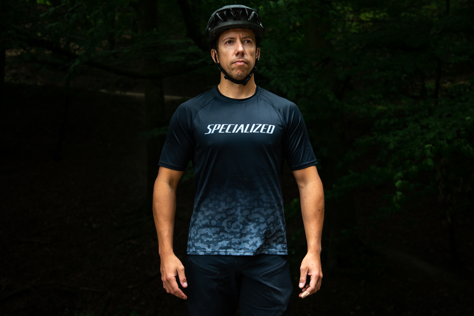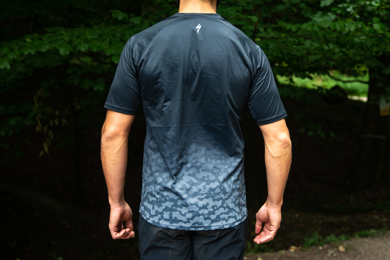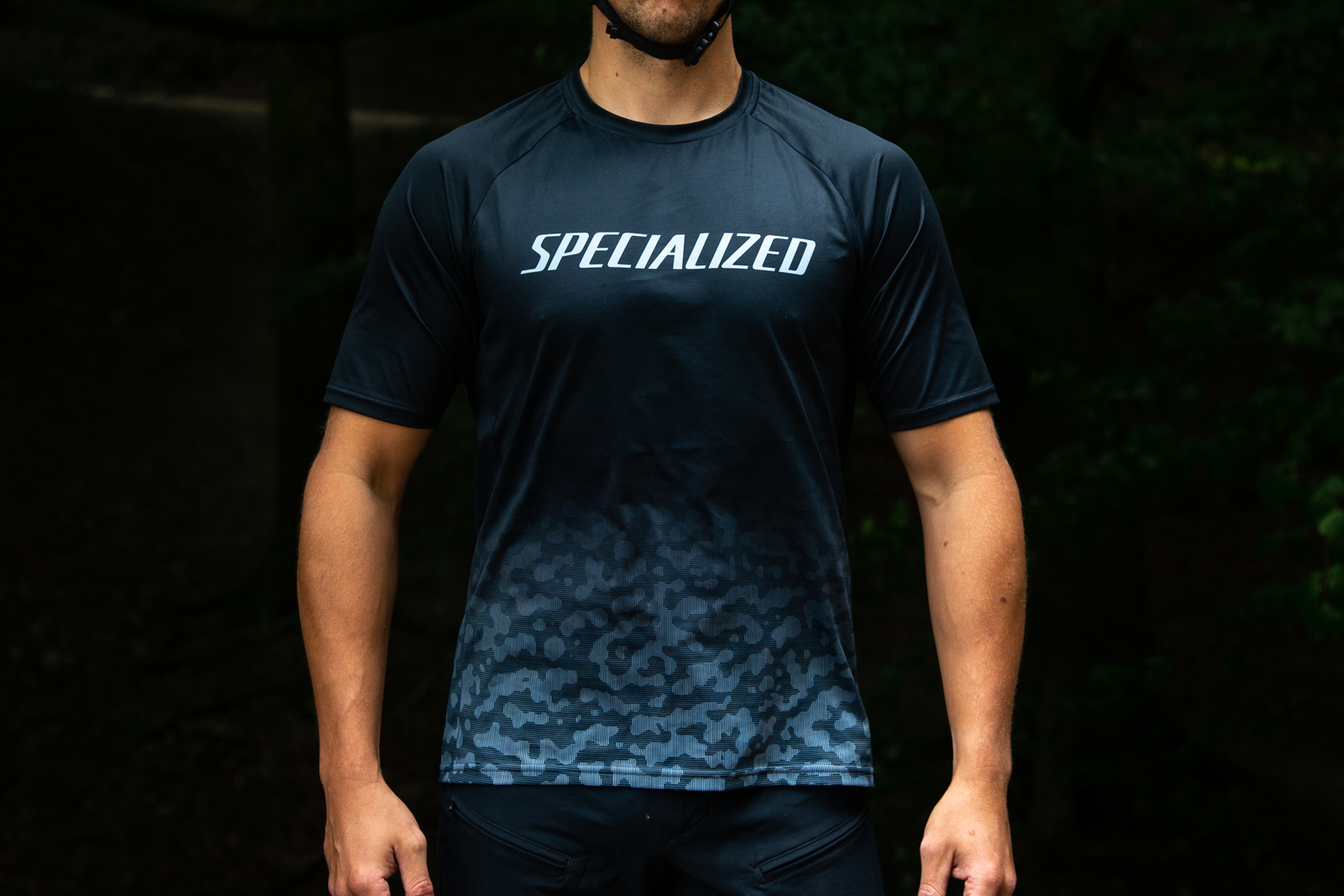 This is the lightest fabric on test and it is super cool on a hot ride, quickly drying and keeping you comfy all day. We were also stoked to see a 100% recycled jersey. The styling is bang on with its low key camo design around the hem. Some riders may not want Specialized across their chest when riding other bikes, but it doesn’t matter to us.