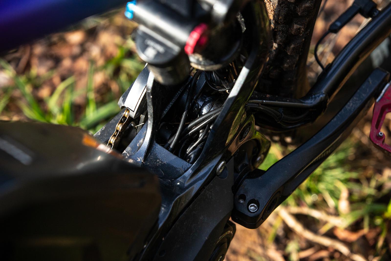 As always though, where a component is a compromise in one place, it can often be an advantage in another and this was certainly the case with the sticky rubber. The supple suspension and soft compound make the Miami Sunset Vitus a tenacious technical climber. The 444mm chain stays help you stay in front of the rear hub and the general climbing position was comfy and roomy for my 177cm height. Sometimes E-Bikes can wander under power when climbing in high power modes, but the E-Sommet was able to hold its path when peddling hard in Boost mode.