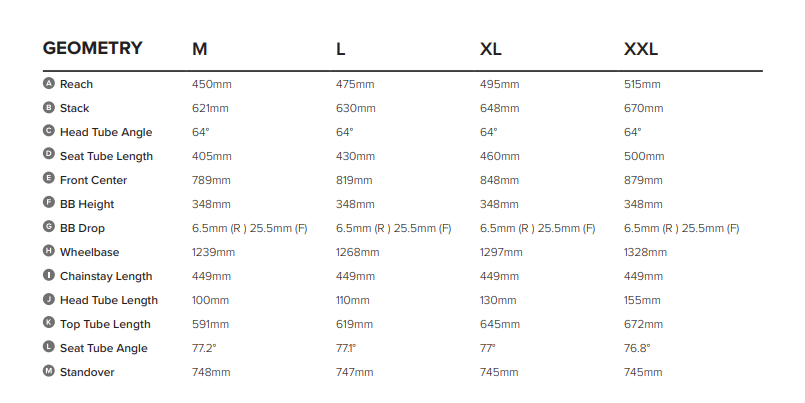 Chainstays are fixed across the range at 449mm with the wheelbase on the medium coming in at 1239mm.