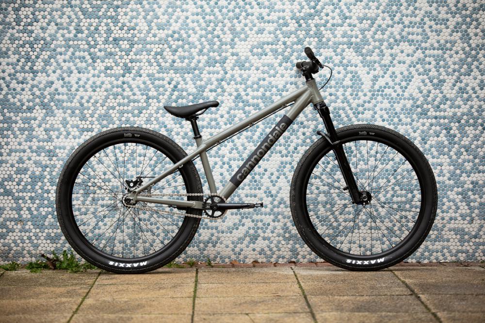 Spec-wise, it’s all pretty functional. Bolted to a C3 alloy frame is a 100mm Manitou Circus fork to take the edge off the landings, Cannondale’s own finishing kit and Fabric saddle deal with the contact points, rolling on Formula hubs paired to alloy 32h rims shod with Maxxis DTH tyres, a Tektro mechanical rear disc handles the anchors and that is pretty much it. Simple, yet effective.