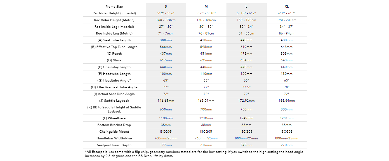 You get a 451mm reach and a 410mm seat tube on the 29″ Escarpe in size Medium. Head angle is one degree steeper than the Sommet at 65 degrees with a suitably steep 77 degree seat tube angle, again, size specific. Chainstays are fixed at 435mm.
