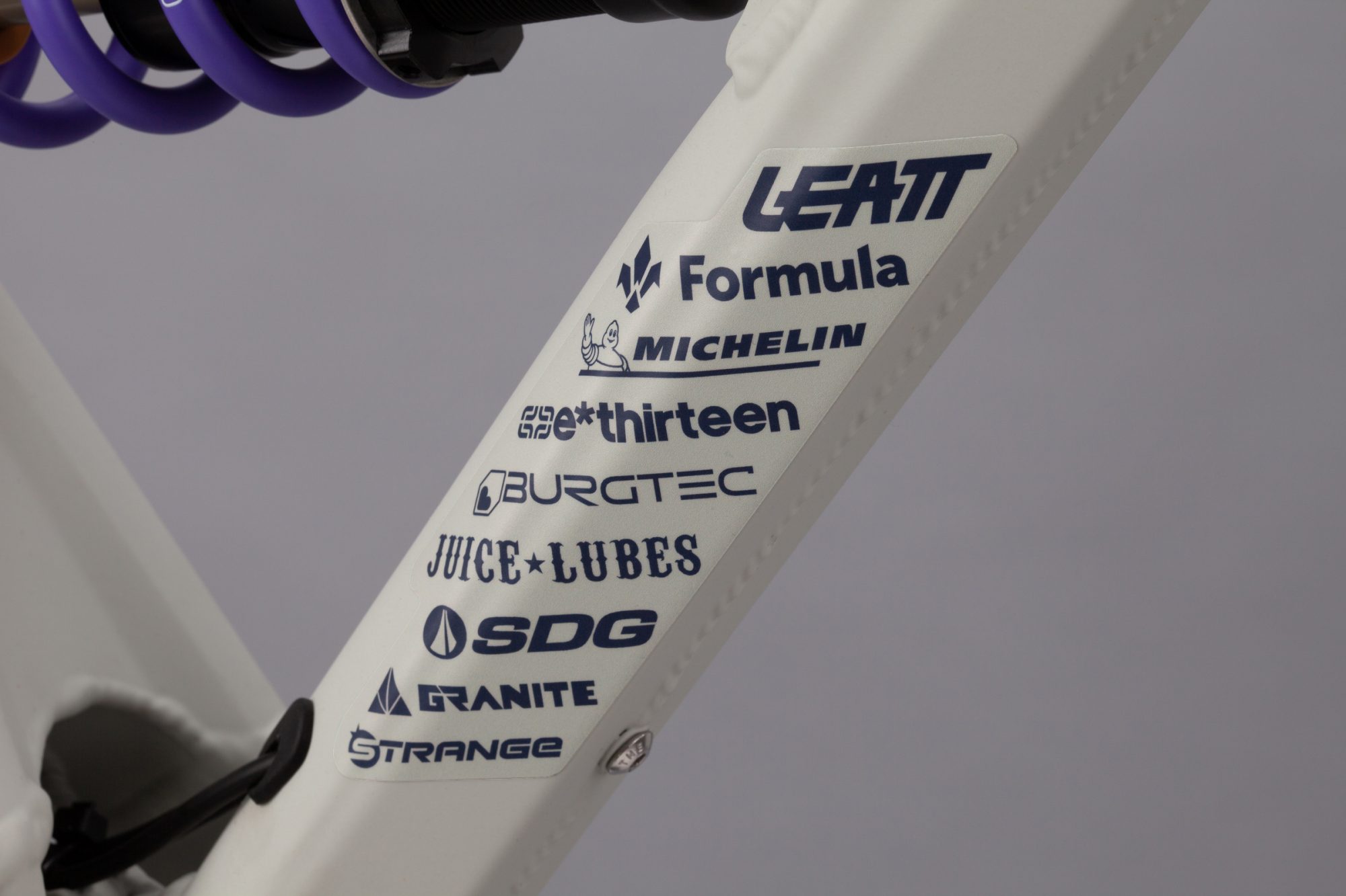 Formula feature heavily, with a Selva S fork and a MOD shock providing the damping duties, with their 4-piston Cura brakes reining the beast in. E13’s LG1 wheels are shod with Michelin Wild Enduro rubber, SDG handle the lounge area, with smatterings of Burgtec kit out front.