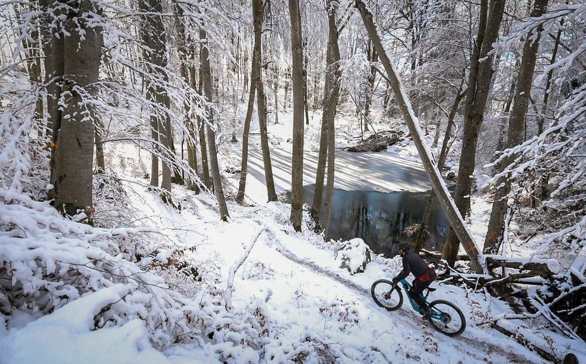 Dan Milner is no stranger to snow sports photography, having shot some of snowboarding’s most iconic and challenging expeditions over the last two decades. But no matter the weeks he’s camped out on glaciers, or the number of couloirs he’s climbed, it is on the bike that he feels most at home, even in winter.