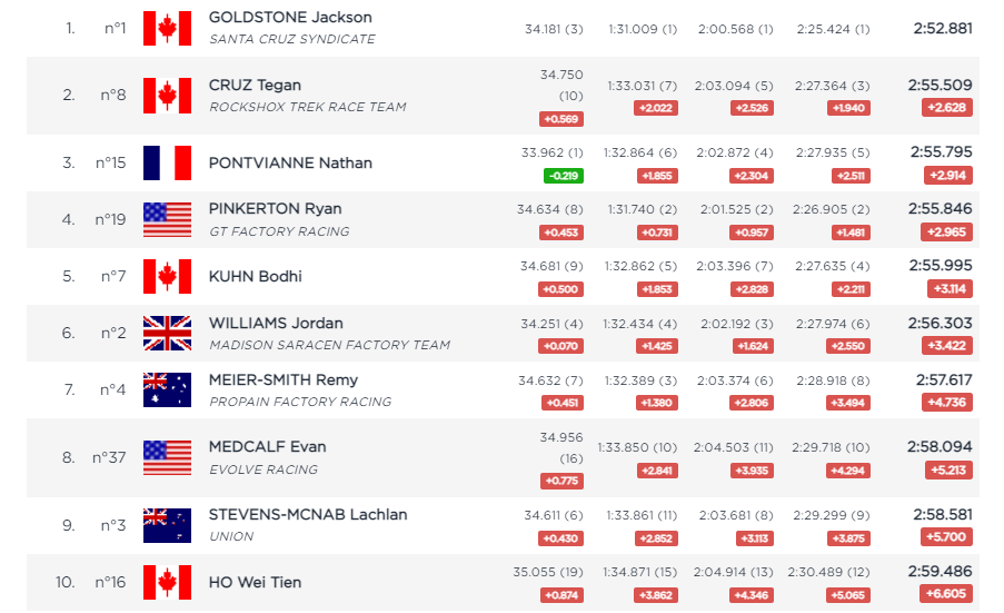 Jackson Goldstone put down a heater to finish qualis 2.6 seconds to the better over Tegan Cruz. Jordan Williams would have to settle for 6th, but there’s no points on offer in Junior qualis, and 6th place was only 3.4 back.