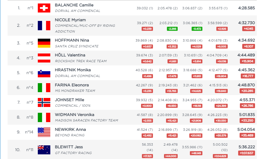 Once again, Camille Balanche showed her class on a hectic track. She’d slowly build into her run, demolishing the final two splits to go over five up as she crossed the line. Also worth noting that the front three, Balanche, Nicole and Hoffman were streets ahead of the rest of he field.