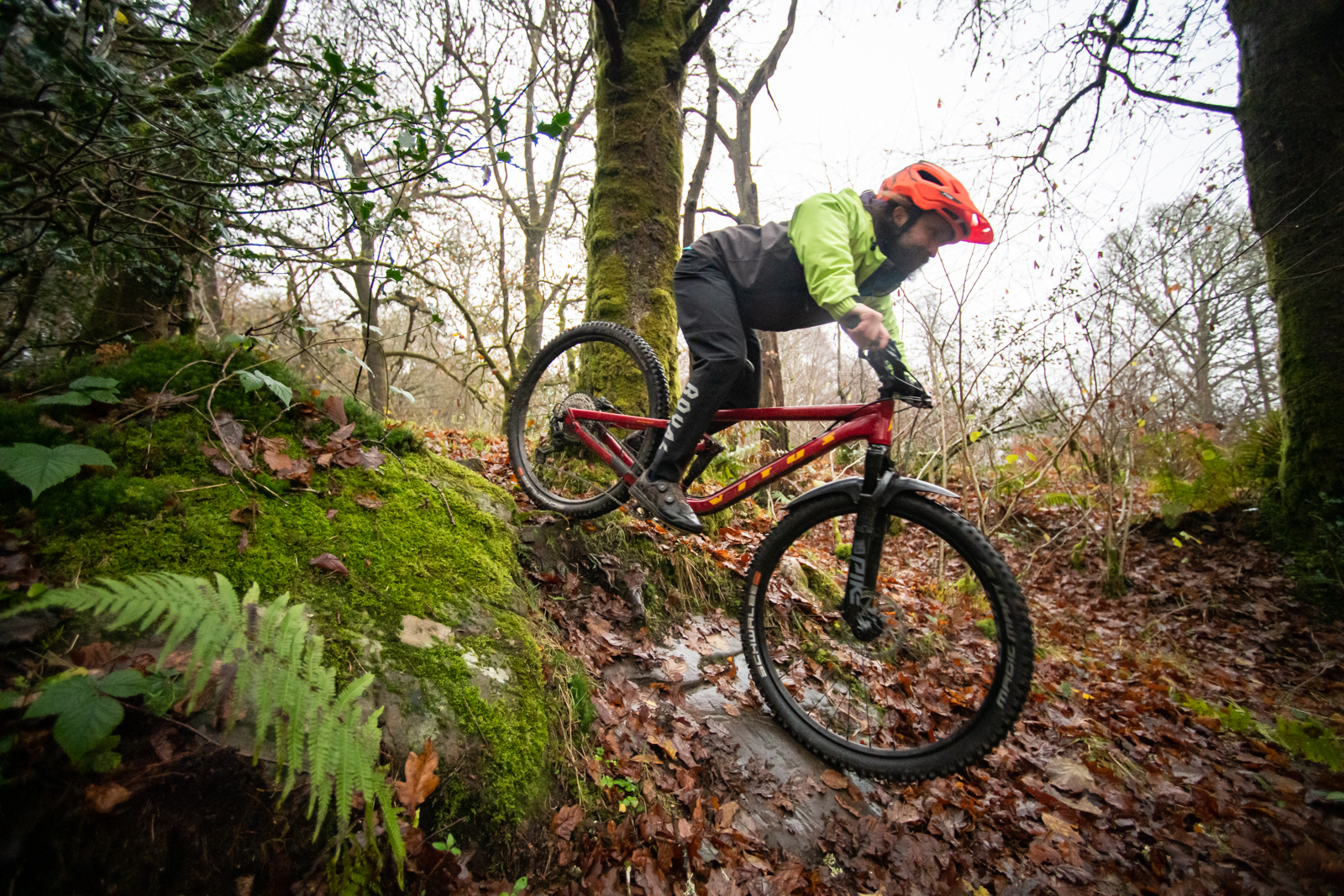 As the speed began to build, the Mythique chassis showed its class, dealing with a wide range of hits with ease despite the base model Rockshox suspension fitted. Direction changes needed to avoid the greasy spots were executed without issue and getting the front or both wheels off the ground felt far too easy.