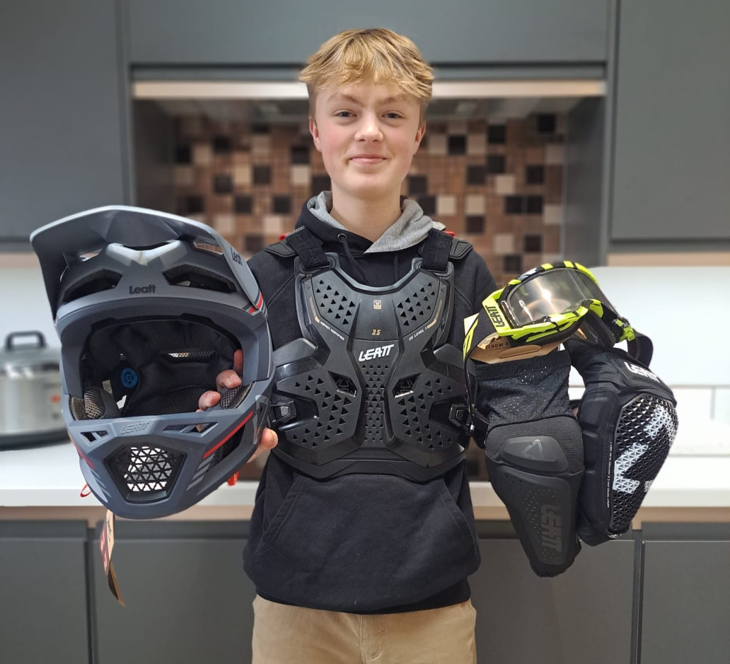 TotalMTB have delivered their 9th #TotalSuprise consisting of a full Leatt protection setup, from full face to chest protector and everything else in between, to young Oscar.