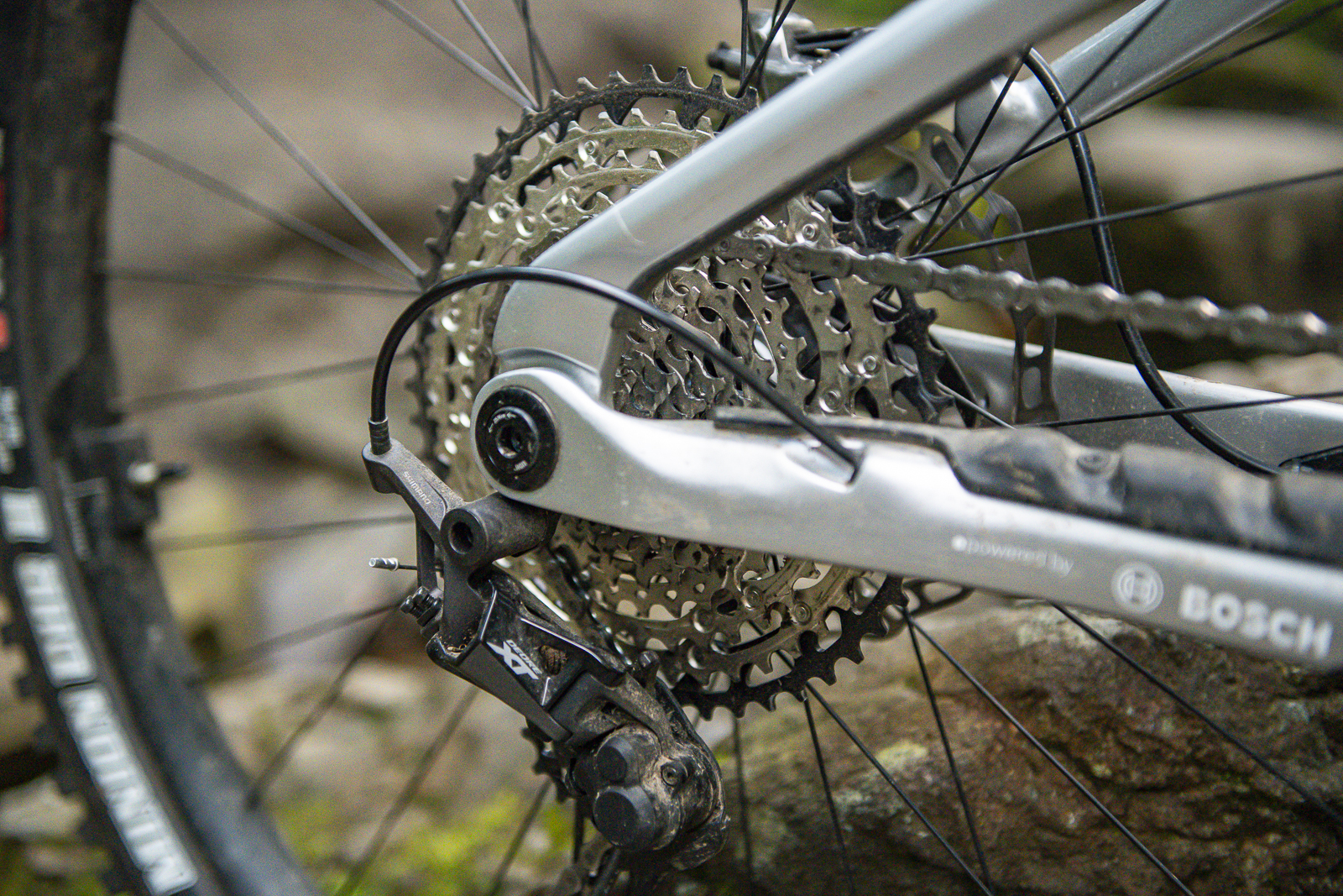 Perhaps the only thing I could find to grumble about is the rotors. Galfer rotors are, for the most part, class, as are the XT 4-pots, but even on an ebike at the lighter end of the spectrum, larger rotors are always going to be welcome. The rate at which you can fling this bike down a hill means that getting it all back under control takes a little more effort than it would on a normal bike. 203mm rotors are sufficient on the latter but 220s aren’t going to go amiss on a bike this fast.