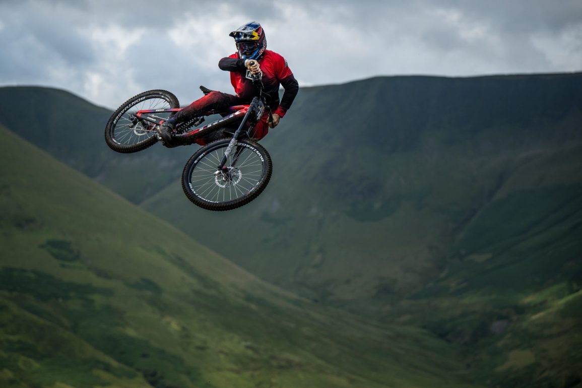 Trek Factory Racing’s style master supreme, Kade Edwards, takes on the Red Bull Hardline course tailed all the way by an FPV drone.