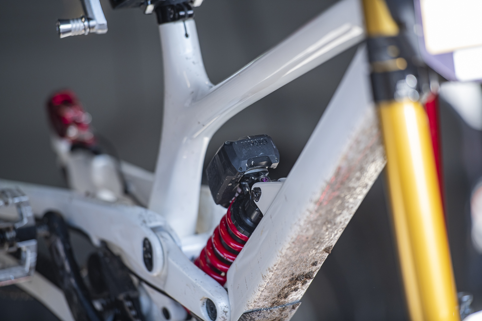 Not content with having a fresh bike launched yesterday, Vali Höll’s YT Tues today came equipped with a bonus idler as well as the same Rockshox dampers as yesterday but with the trolley service that is Flight Attendant.