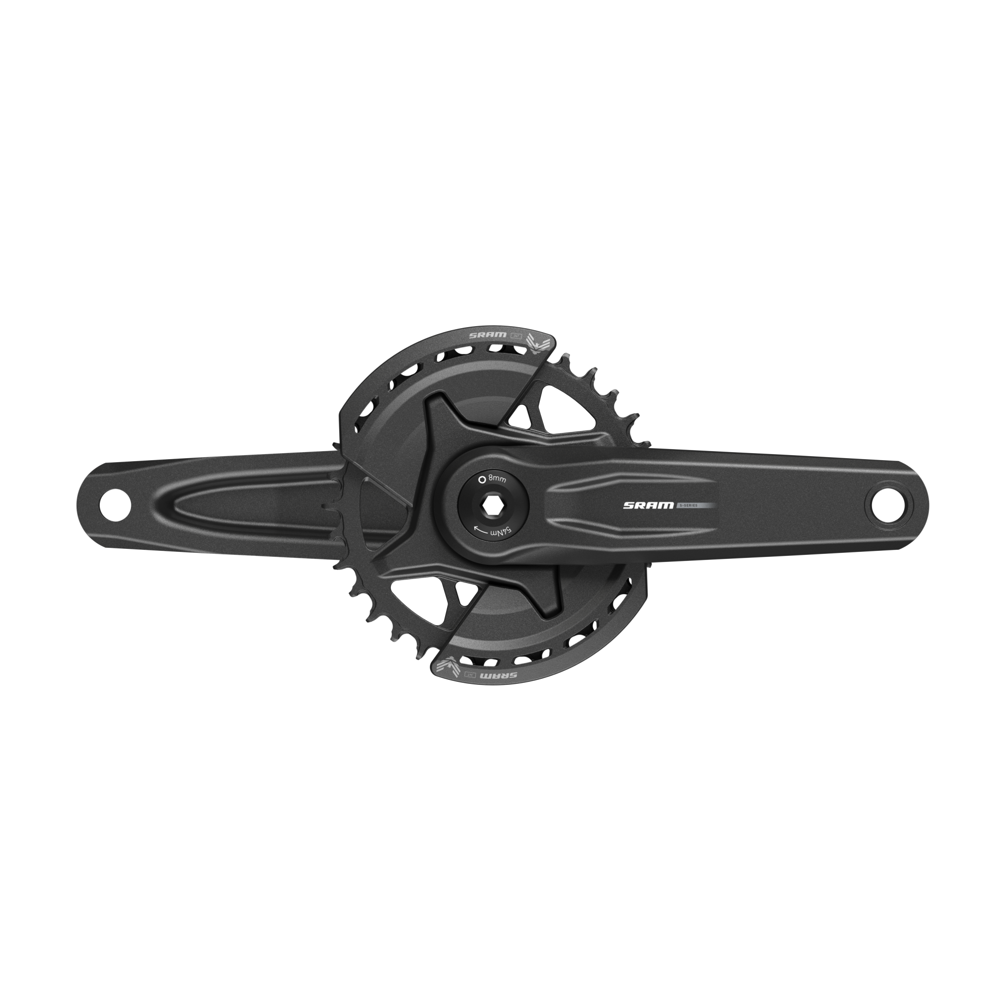 The S-1000 MTB crank is a forged alloy unit with SRAM’s 8-bolt chainring mount. Lengths are in 5mm increments between 155 and 170mm. The bash guards are the same as those used on the GX and XO cranks. Chainrings are stamped steel or aluminium. eBike chainsets are available in the same lengths and to fit SRAM, Brose, Bosch and ISIS variants.