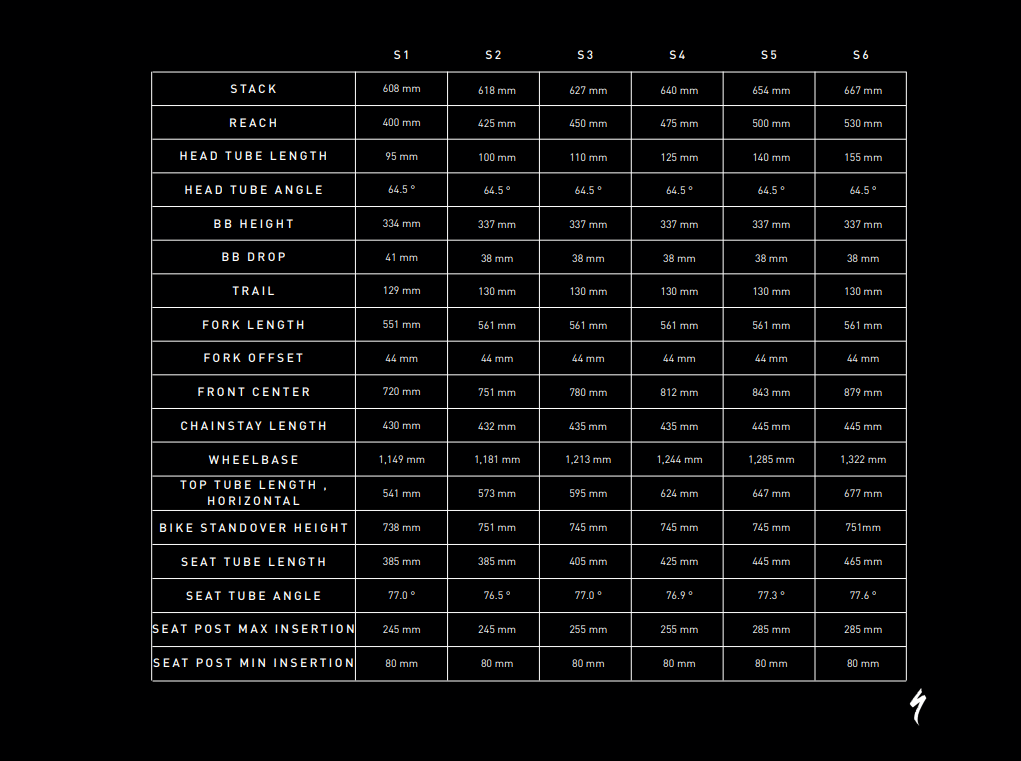 Reach on the S3 in mid headtube and high BB setting is 450mm with a seat tube of 405mm. Head angle is 64.5 degrees with a seat tube angle of 77 degrees. Chainstays are 435mm with a wheelbase of 1213mm.