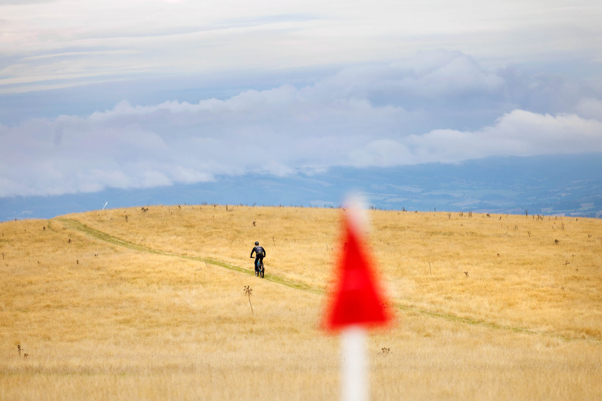 However, the sheer quality of the turbo loamers in between more than made up for it. I was flying. I heard a Shimano motor whirring behind me at the end of the climb. It was Liam. I found a smart place to let him past. He offered “you’ll catch me in three seconds anyway…”. I opted to put that theory to the test and forgot I was on a bike I was on my second ride on. The stage finish was extended to get away from a hornet’s nest and was a hard push up a basher track at 45 degrees. Minging.