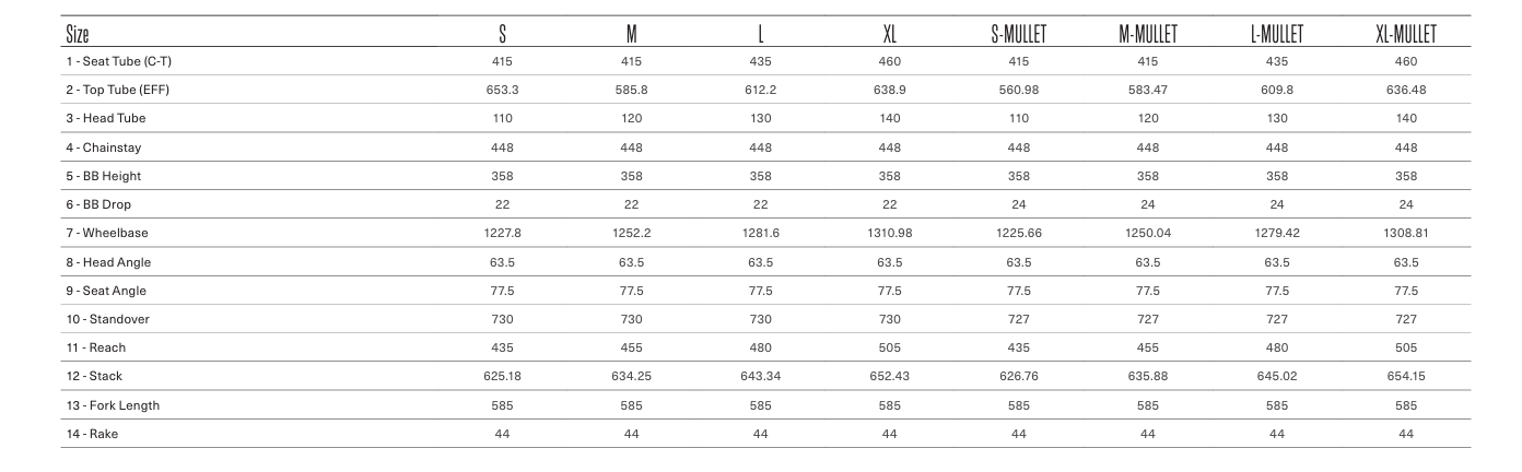 Reach on the Wild in M is 455mm with a seat tube length of 415mm. Head angle is 63.5 degrees with a seat tube angle of 77.5 degrees. Chainstays are 448mm across the sizes with the wheelbase on the M of 1252.2mm.