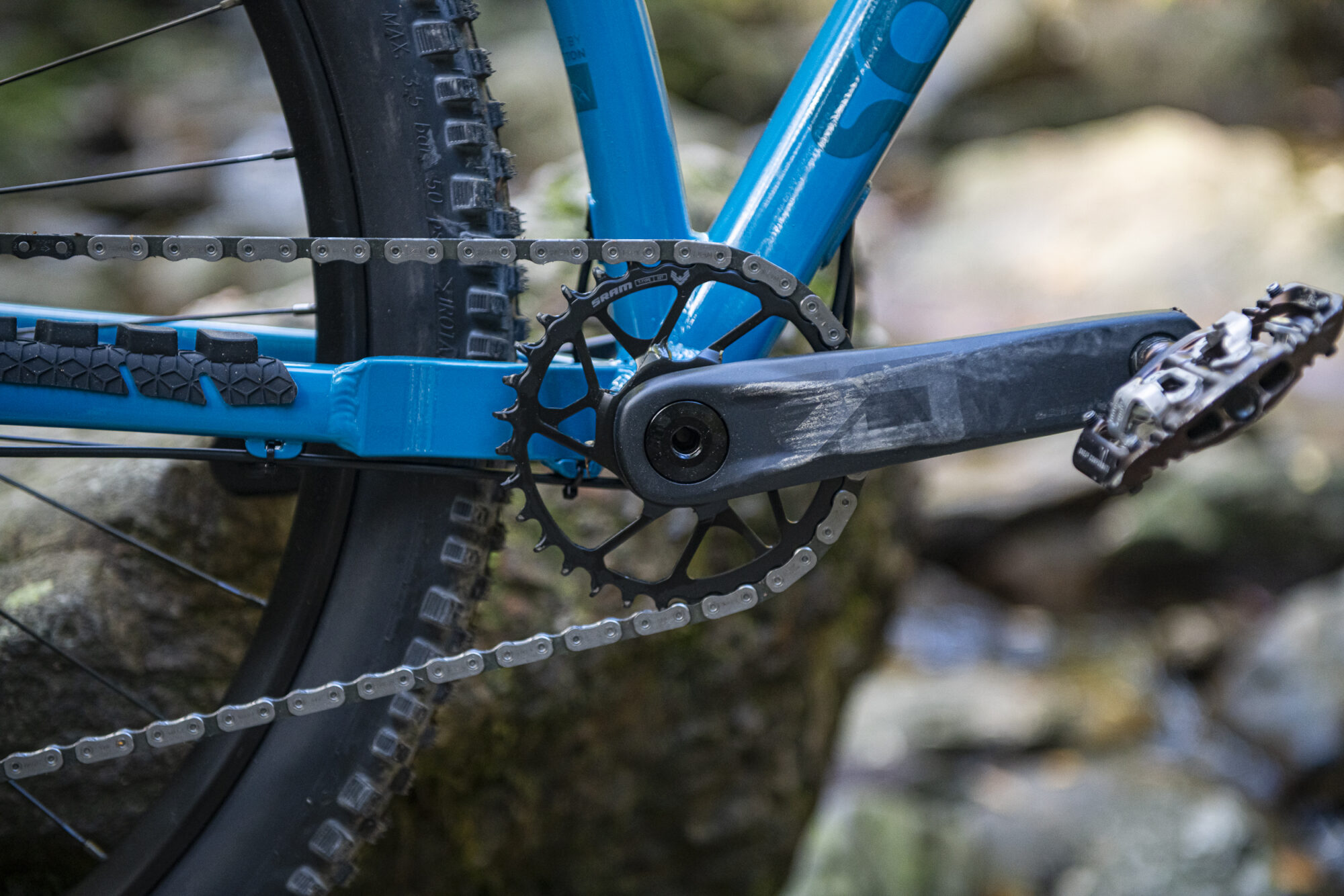 The SRAM DB4s are every bit the measure of a bike like this. Plenty of bite without being jabby and they don’t fade fast when the descents get longer or the speed ramps up. The Sonder branded cockpit is ample with the bar wide and low with a short stem. I can’t imagine running this bike without a dropper post that doesn’t come as stock. Of all the mod cons on a bike, I think a dropper would be the last thing I’d opt to give up.