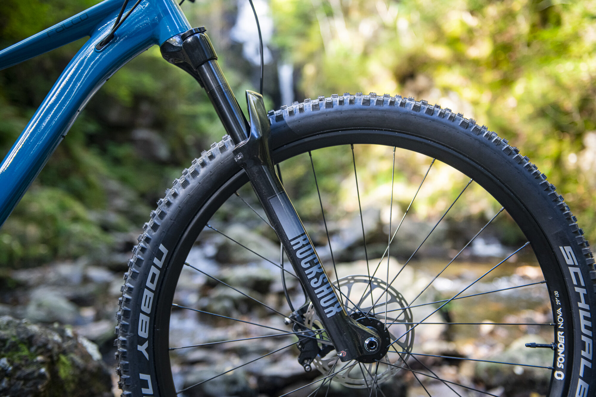 Setup on the Falco was about as straightforward as a trail hardtail can get. Set the sag and rebound on the fork, wind the levers in to suit. A little more wind to see off the punctures and away we go. Despite the lower than usual price tag, the Falco isn’t a pig when it comes to weight and the speedy Schwalbe rubber does a solid job of putting your watts into forward motion.