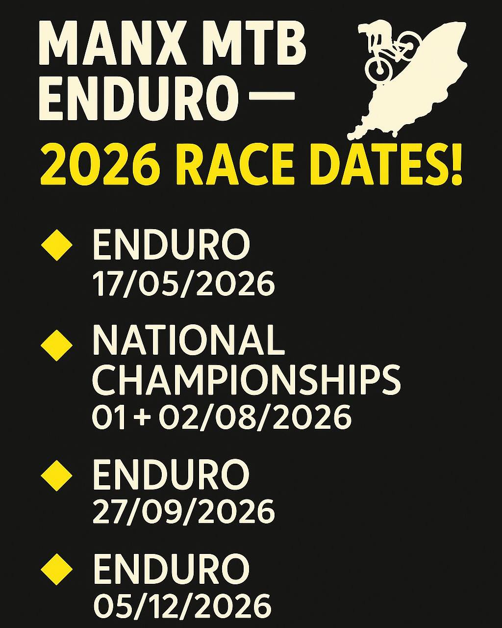 - Lloyds National Enduro & E-Enduro Championships 2026 – Powered by Cycle 360 MTB Enduro , Isle of Man – Saturday, 01 Aug 2026